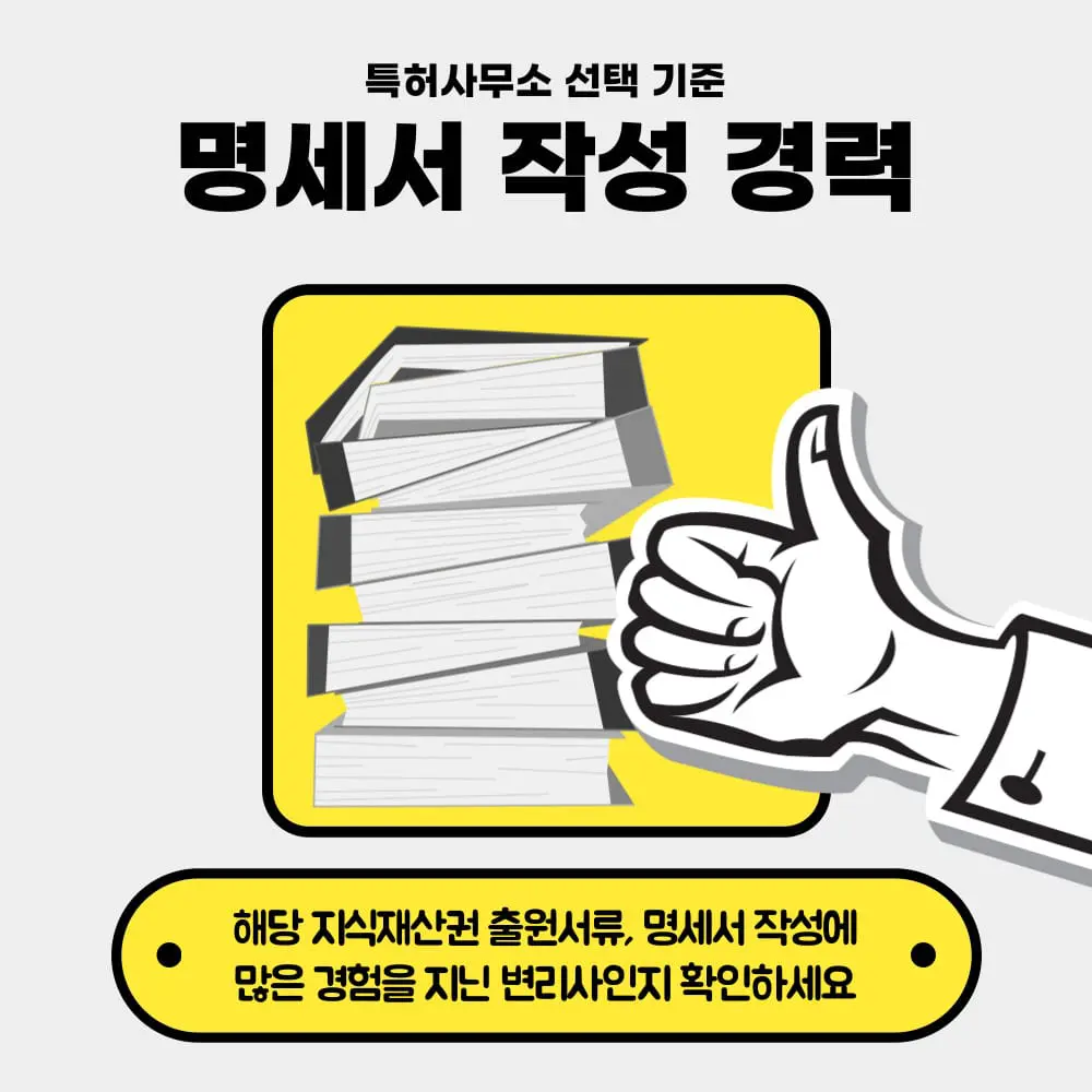 그래서 변리사의 명세서 작성에 대한 경력과 경험을 비교해 보시는 것도 좋을 것 같습니다.