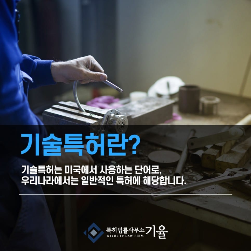 기술특허는 미국에서 사용하는 말로서, 우리나라에서는 일반적인 특허라 할 수 있습니다.