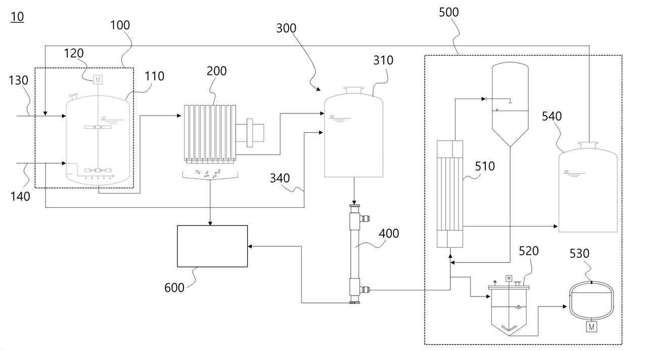 요약 : 본 발명은 염소 바이패스 더스트의 재활용 시스템 및 이를 이용한 재활용 방법에 관한 것으로, 본 발명의 염소 바이패스 더스트의 재활용 시스템은, 염소 바이패스 더스트와 물을 교반하여 칼슘, 칼륨, 염소 및 중금속이 포함된 제1 혼합액을 생성하고, 상기 제1 혼합액에 이산화탄소를 공급하여 상기 칼슘을 탄산염 형태의 제1 침전물로 광물화하는 제1 광물화부; 상기 제1 광물화부와 연결되고, 상기 제1 혼합액에 포함된 상기 제1 침전물을 여과하여 제2 혼합액을 생성하는 제1 여과부; 상기 제2 혼합액에 이산화탄소를 공급하여 상기 제2 혼합액에 포함된 상기 칼슘을 탄산염 형태의 제2 침전물로 광물화하는 제2 광물화부; 상기 제2 광물화부와 연결되고, 상기 제2 혼합액에 포함된 상기 제2 침전물을 여과하여 제3 혼합액을 생성하는 제2 여과부; 및 상기 제1 침전물과 상기 제2 침전물에 포함된 상기 중금속을 제거하는 침전물 처리부를 포함할 수 있다.