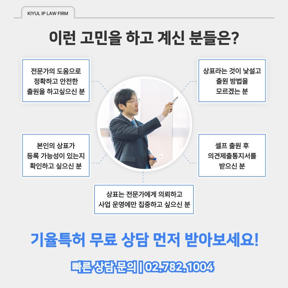 이렇게 원활한 상표등록을 통해 사업을 안전하게 진행하기 위해서는 변리사의 조력을 받아보시는 것이 바람직합니다.