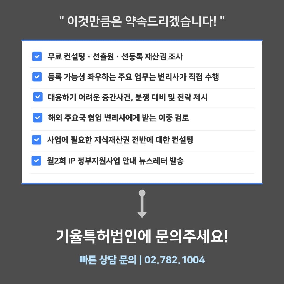 컨설팅에서는 더 자세한 절차/비용 안내와 더불어 등록 가능성 검토까지 받아볼 수도 있으니 참고해주시기 바랍니다.