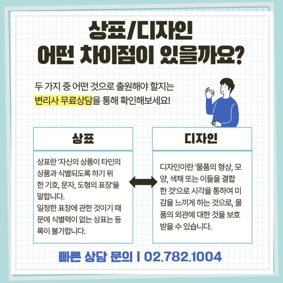 디자인등록 절차에 대해서 알아보시는 분들 중 많은 분들이 상표등록과의 차이점에 대해서 문의하곤 하십니다.