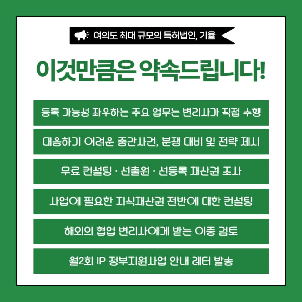 산업재산권 진단 전문기관(특허청 지정), 특허법인 기율입니다.