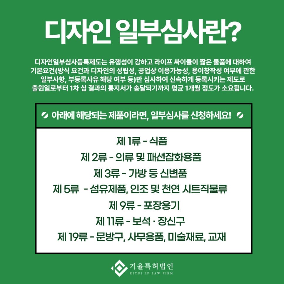 그러한 패션 용품을 1년 이상이 걸려서 출원하게 되면, 트렌드를 놓쳐서 판매를 할 때에 독점 권리를 활용하지 못하실 것인데요.