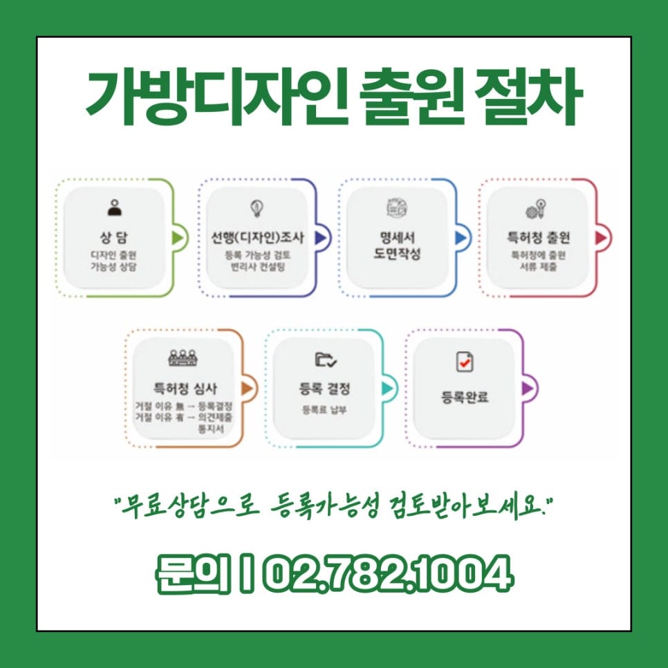 오늘은 가방디자인등록 절차와 일반심사제도에 대해서 알아보았습니다.