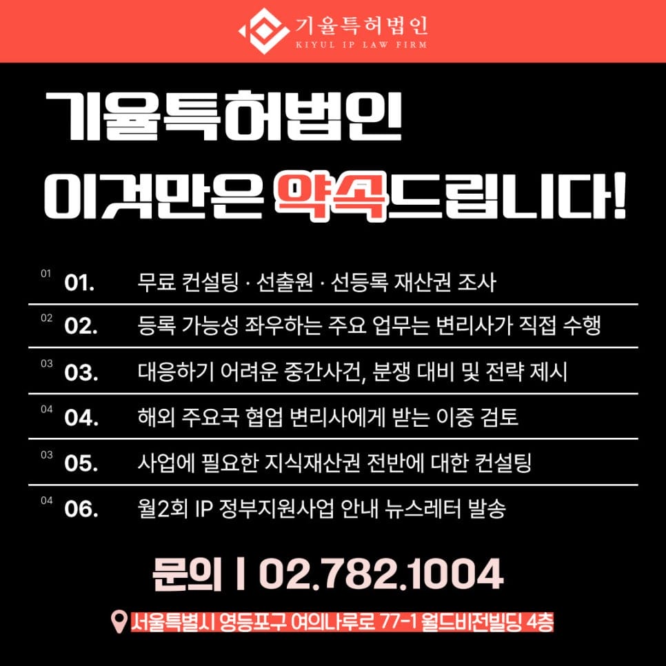 특허청에서 지정한 산업재산권 진단 전문기관, 기율입니다.