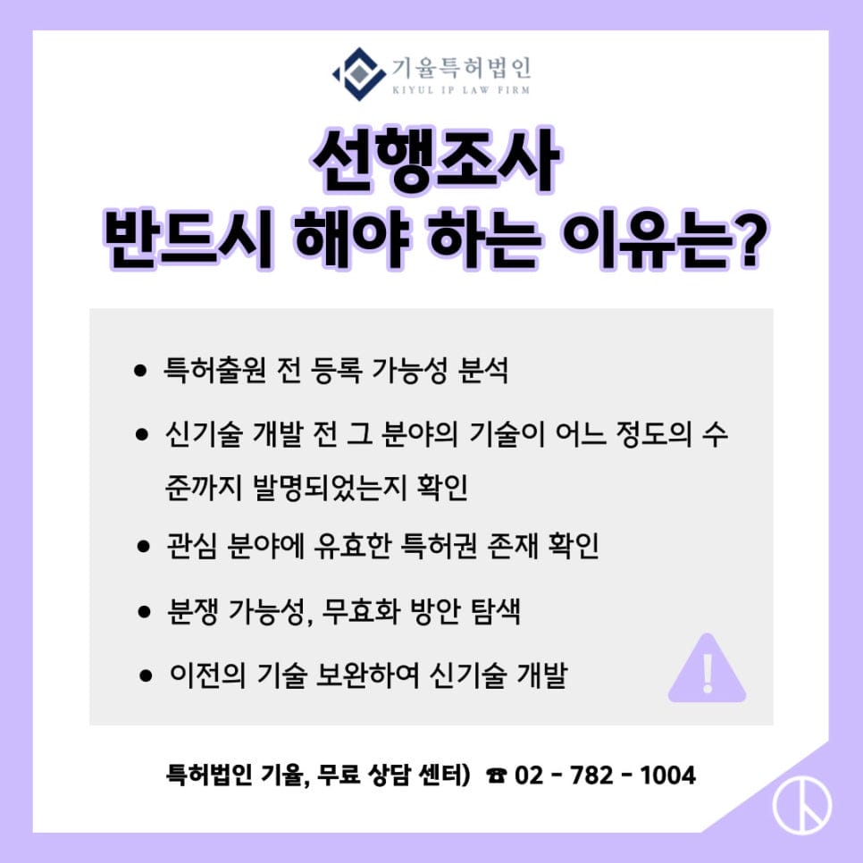 그렇기에 특허등록과정에서 필요요건을 충족했는지를 선행조사를 거쳐서 파악하는 것이 중요합니다.