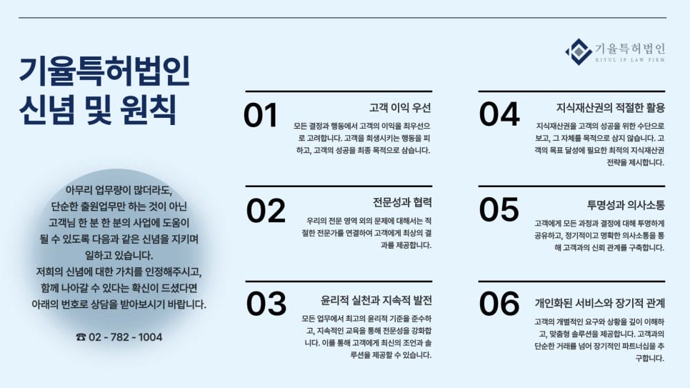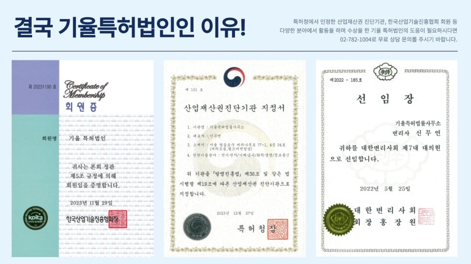 무료 컨설팅 업체를 알아보고 계신 분들은 저희 기율특허법인에 문의주시면 좋겠습니다.