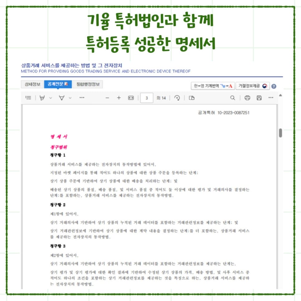 명세서의 내용을 보시면 알 수 있듯이, 기재 내용이 매우 전문적이고 까다롭습니다.