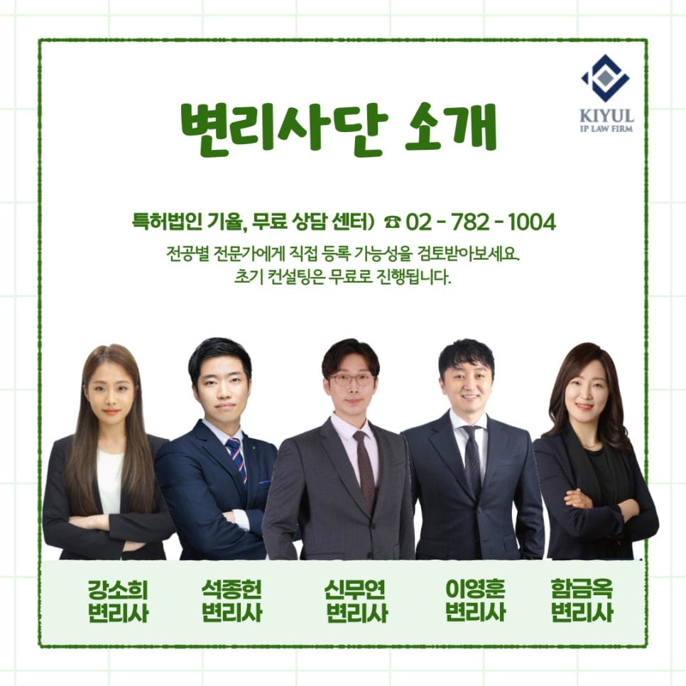 물론, 판단은 관련 분야를 전공한 변리사의 도움을 받아야만 한다는 사실, 잊지 마시기 바랍니다.