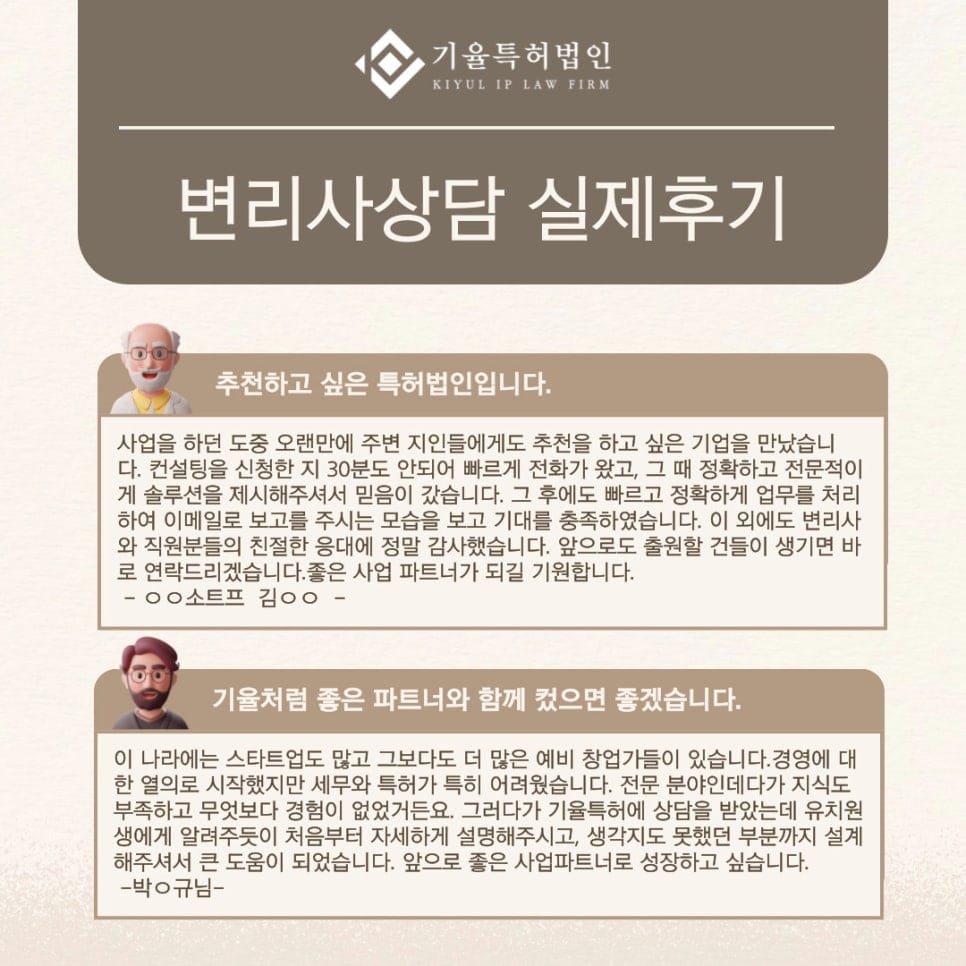 글 하단의 링크를 통해 전공 변리사에게 1:1 무료컨설팅을 받아보시기 바라겠습니다.