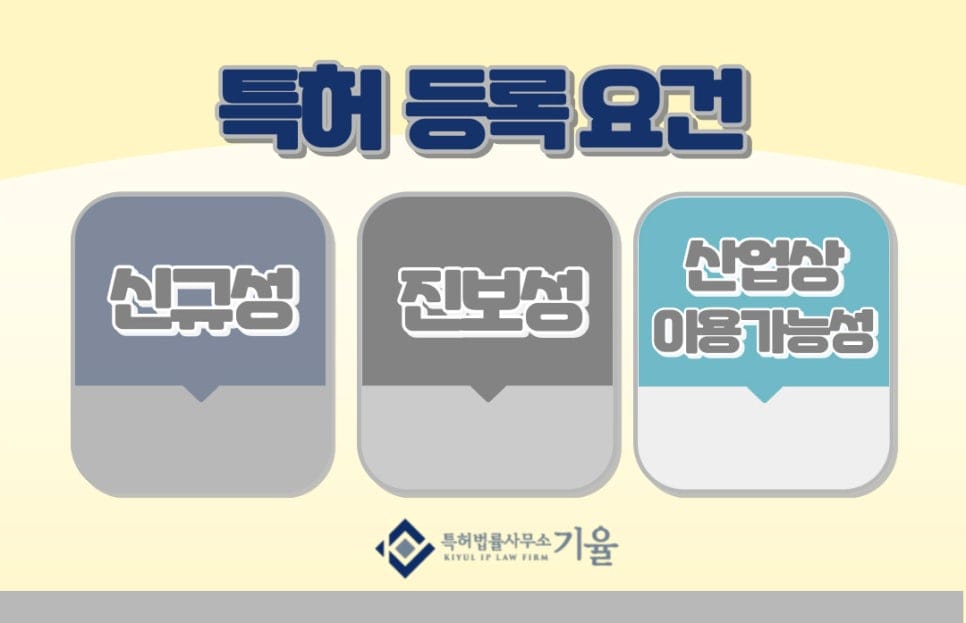 특허등록을 위해선 신규성 · 진보성 · 산업상 이용 가능성을 충족해야 합니다.