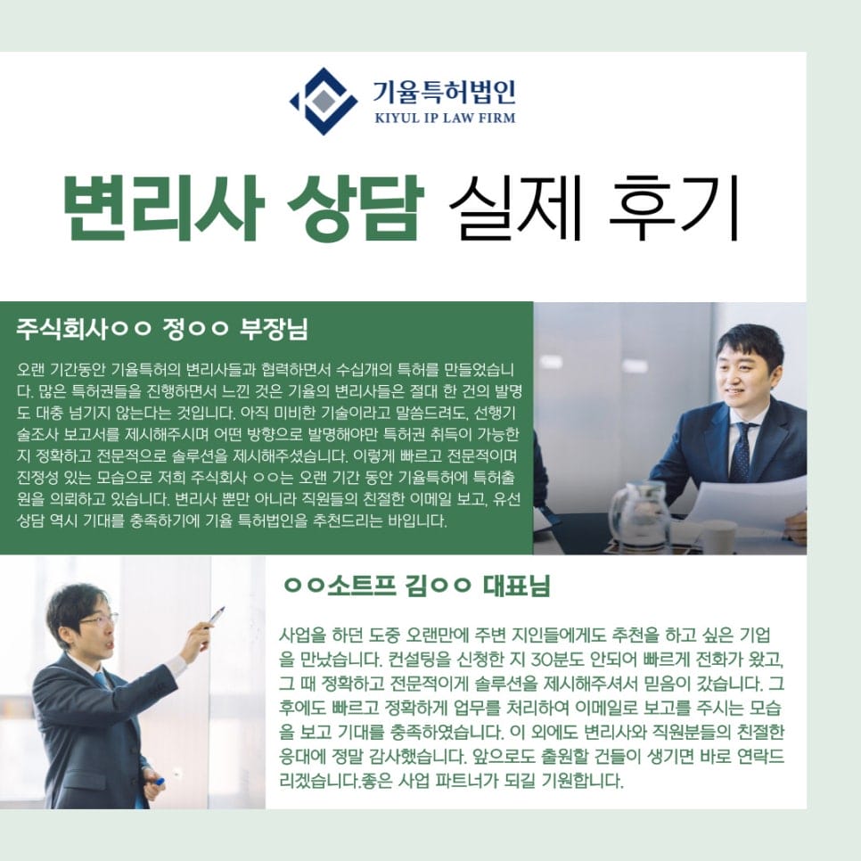 따라서, 이러한 업무를 전문으로 하고 있는 변리사에게 의뢰하여 보다 더 정확한 작업을 하며, 등록 가능성을 높이셔야 합니다.