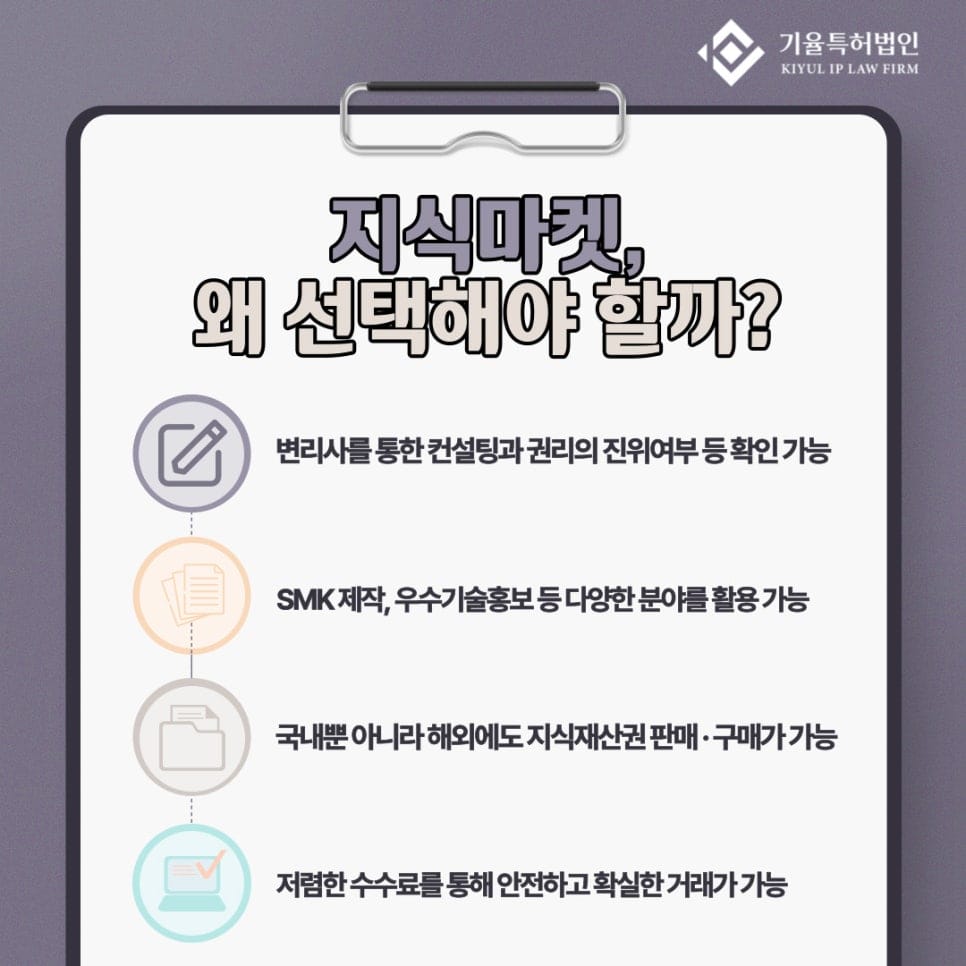 오늘은 특허법인 기율의 변리사 · 가치평가사들이 직접 운영하는 사이트인 ‘지식마켓’에 대해서 소개해드리려고 합니다.