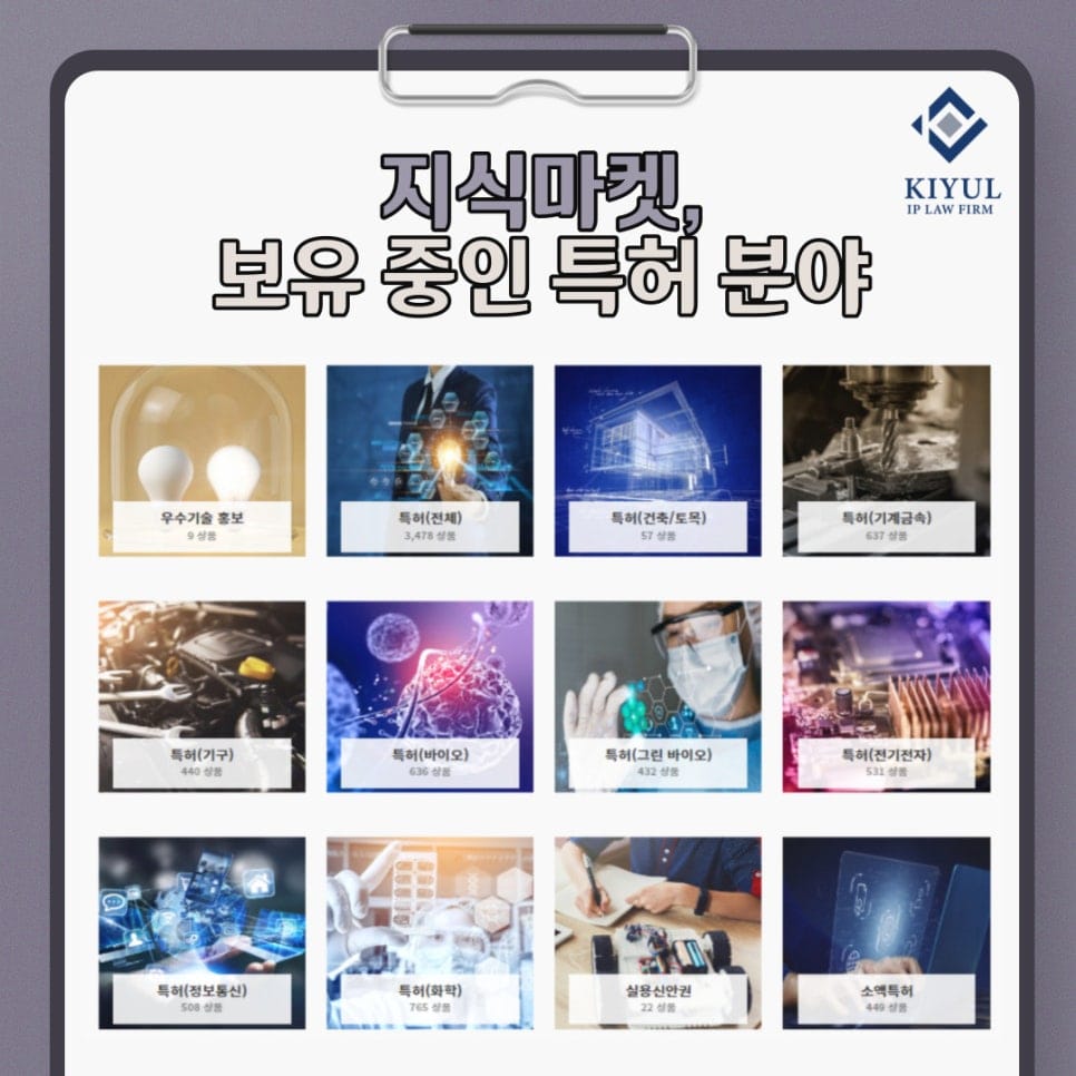 특허법인 기율에서는 변리사가 직접 운영 및 관리하는 ‘지식마켓’에서 기술이전을 도와드리고 있습니다.