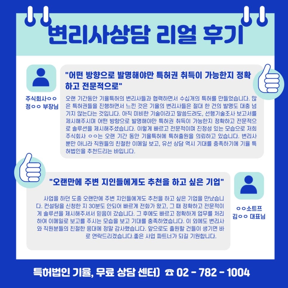 그렇기에 특허법인 기율의 변리사에게 의뢰하여 선행조사부터 명세서(청구범위 기재 서류) 등의 전문 작업을 받고,